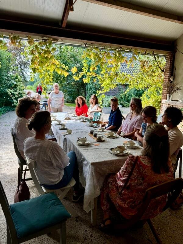 Onder het genot van al het lekkers, kunnen we elkaar weer bijpraten over de vakantie en natuurlijk ook over het werk. Na de high tea mag iedereen een eigen boeket plukken. Hoe leuk is dat!